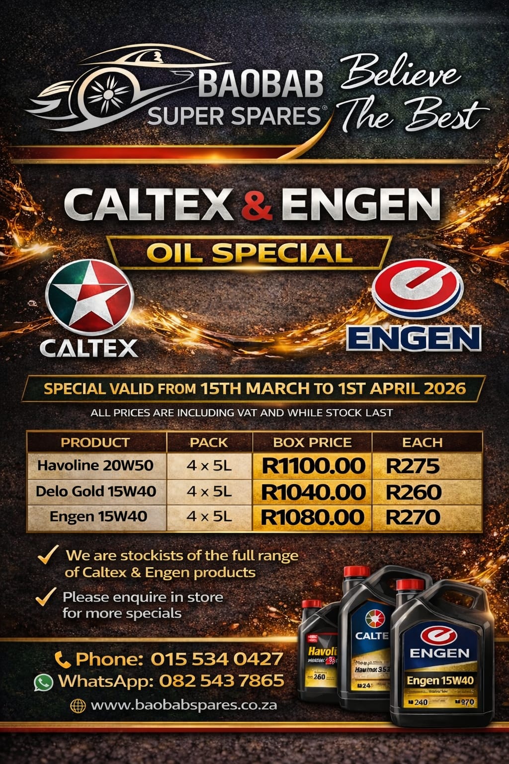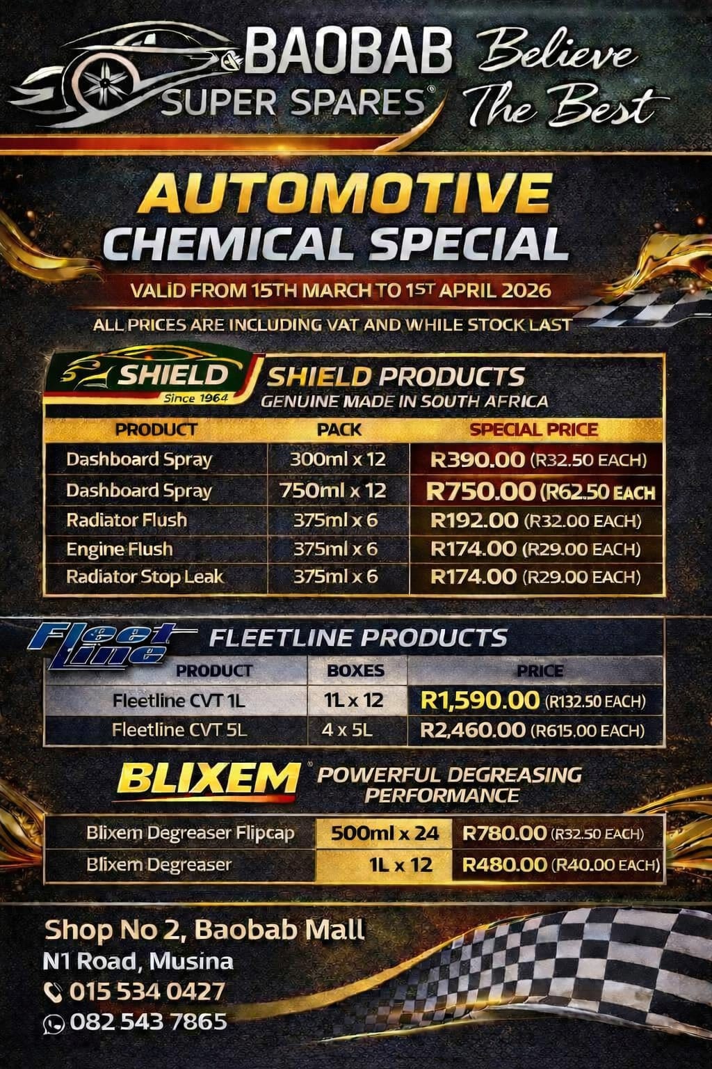 Baobab Super Spares stocks a huge range of car parts, accessories and more. Some of which includes